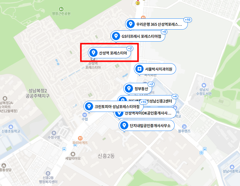 산성역 포레스티아는 성남시 수정구 신흥동에 위치한 대단지 아파트입니다. 8호선 산성역까지 도보로 5분 정도 걸리며 산성역에서 잠실역까지는 지하철로 약 15분 정도 걸립니다. 아파트 뒤로는 성남누비길 등산로(영장산)가 있으며, 근처에 영장근린공원, 남한산성, 단대공원, 희망대 공원이 있습니다. 단지가 위례신도시와 700m 떨어져 있어 위례 신도시의 인프라를 이용하기에도 용이합니다. 인근에 어린이집, 초중고등학교가 가깝게 위치하고 있어 학부모들에게도 인기 있는 아파트입니다.